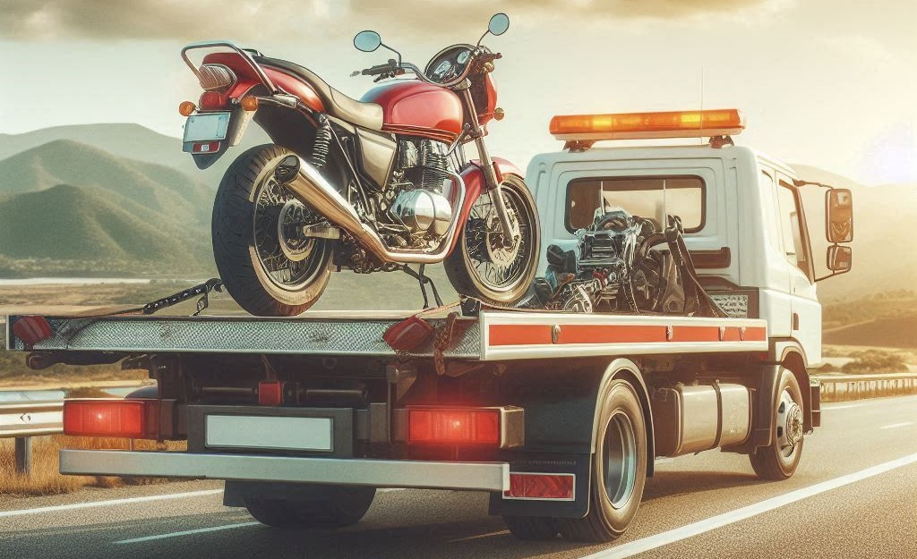 Specialized towing service for motorcycles, with the right tools and techniques to ensure safe and secure transport.